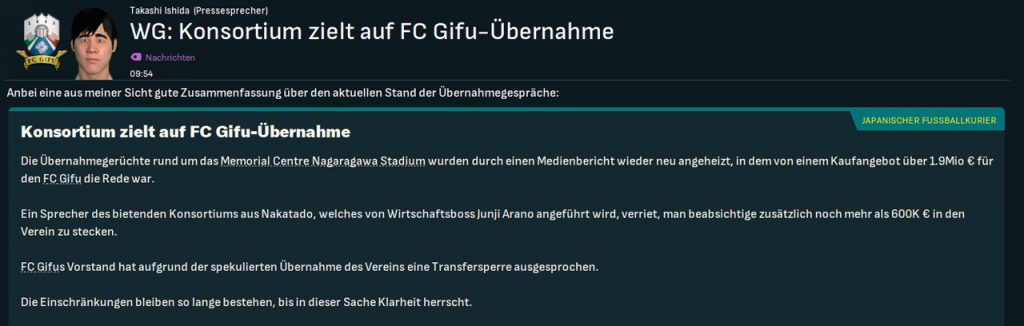 Nun ist diese Zeit des Stillstands auf dem Transfermarkt aber vorbei. Das Konsortium hat wirklich den Verein übernommen, pumpt sogar rund 600.000 € in die klammen Kassen. Noch besser: Das Geld darf ich direkt für Transfers nutzen…