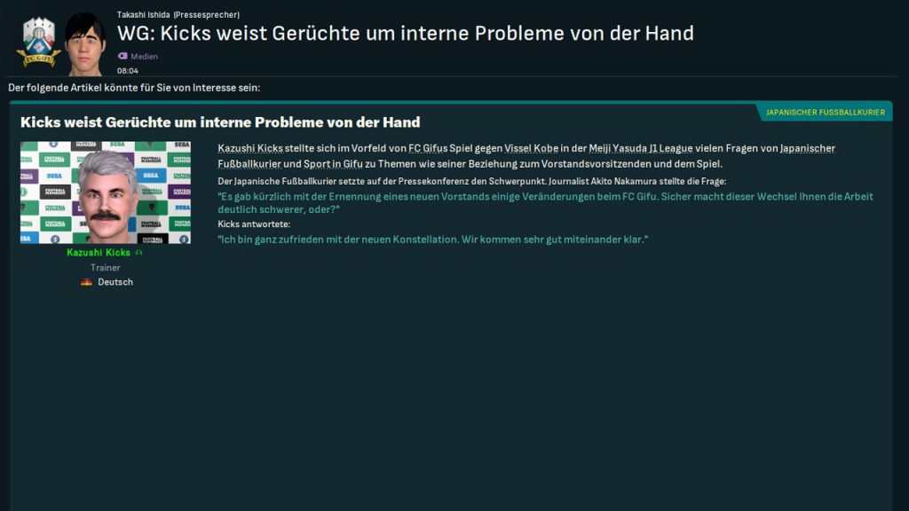 Es sind noch zwei Wochen bis Saisonstart. Die gilt es nun zu nutzen, denn aktuell ist unser Kader noch nicht konkurrenzfähig. Doch das viel größere Probleme haben wir mit dem japanischen Verband. Da scheinen irgendwelche „Käfer“ ihr Unwesen zu treiben – doch dazu später mehr…