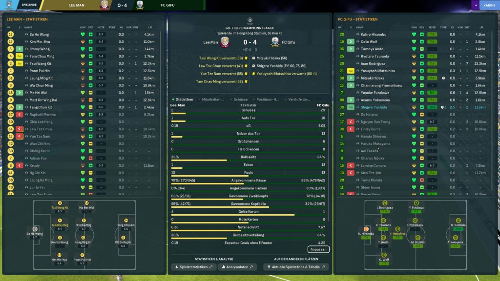 Lange laufen wir in einem dominant geführten Spiel vergeblich an. Es dauert bis in die 56. Minute, als der kurz zuvor eingewechselte Mitsuki Hidaka das erlösende 1. Champions-League-Tor schießt. Als ihm der Ball im Strafraum nach einem Abwehrfehler vor die Füße fällt, haut er ihn humorlos unter die Latte. Kurz darauf erhöht der bis dahin glücklose Shigeru Yoshida per Elfmeter auf 2:0. Damit ist auch bei unserem Starstürmer der Knoten geplatzt. Er legt sogar noch zwei Treffer nach.