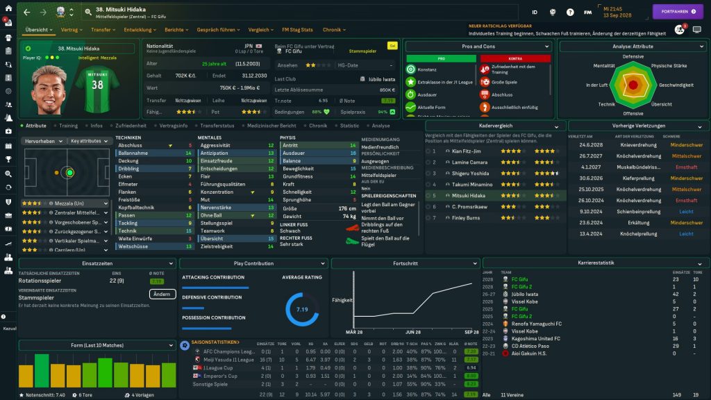 Wir hatten Chancen für drei Spiele und über 5 xG. Daher muss ich noch einmal Hidaka loben, der das erlösende 1:0 erzielte. Er war 2025 schon mal hier. Als Leihspieler half er uns damals beim Aufstieg in die 1. Liga. Nach seiner Rückkehr zu Vissel Kobe und einer weiteren Station bei Jubilo Iwata kam er vor der Saison für umgerechnet 700.000 € (+ 150.000 € mögliche Prämien) zu uns, weil er alle Rollen im zentralen Mittelfeld bekleiden kann. Bisher hat er die Erwartungen voll erfüllt und in der Liga bereits zehn Tore erzielt und fünf weitere vorbereitet.