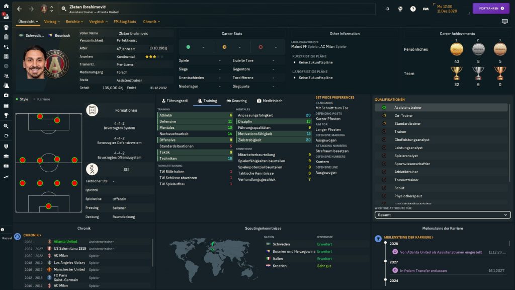 endlich ist die Zeit der Vorbereitung vorbei. Die Saison hat begonnen – und bis dahin ist viel passiert. Ohnehin bin ich in den letzten Wochen sehr nervös gewesen, denn jedes Mal, wenn ich auf dem Trainingsplatz stehe, dann ist neben mir Zlatan Ibrahimović – ja der Zlatan Ibrahimović. Die schwedische Legende ist einer meiner neuen Assistenztrainer – wobei ich ein klein wenig Angst habe, dass er mir irgendwann den Kopf abreißt und sagt: „Jetzt übernehme ich den Laden hier.“
