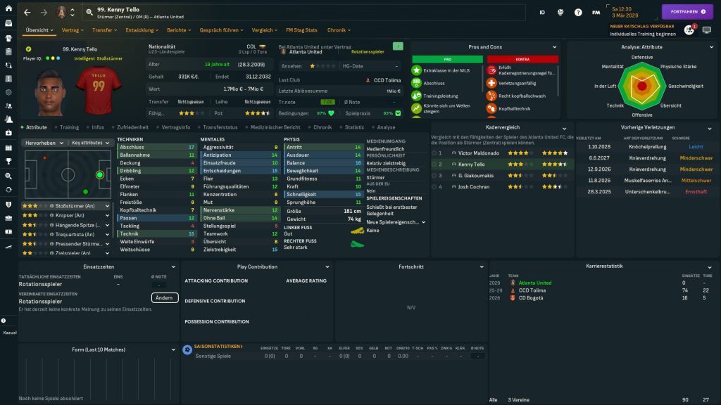 Mit Kenny Tello holten wir zudem noch einen weiteren Stürmer aus Kolumbien. Obwohl er erst 19 Jahre alt ist, bringt er schon alles für die erste Elf mit, wird sich aber erst einmal hinter Maldonado einreihen. Vielleicht schafft diese doppelte Konkurrenz Anreize für Giorgos Giakoumakis, den Verein zu verlassen. Bislang gestalten sich Abgänge noch als schwierig. Offerten bekomme ich regelmäßig nur für Stammspieler, die ich nicht abgeben will – gerade der frisch geholte Félix ist sehr beliebt. Nahezu jeder andere MLS-Club machte mir schon ein Angebot, ihn doch wieder zu tauschen.