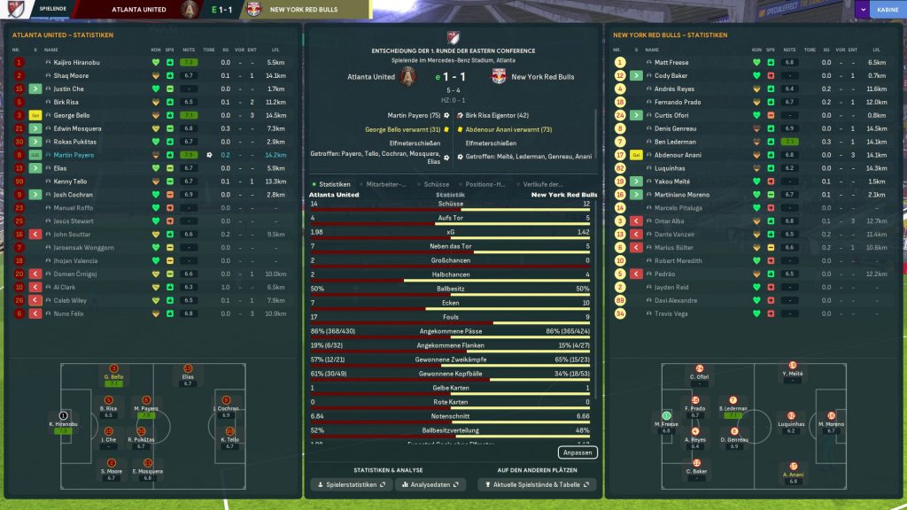 Im Rückspiel in New York standen wir deswegen gewaltig unter Druck. Erneut traten wir aber dominant auf – und dieses Mal auch mit einem Tor. Kurz vor dem Pausenpfiff gelang uns nämlich endlich das erlösende 1:0. Routinier Martín Payero schloss eine tolle Kombination zum 1:0 ab. Doch direkt nach Wiederanpfiff – meine Spieler waren gedanklich noch in der Kabine – fiel das 1:1. Dies hielt zum Glück nicht lange. Kenny Tello, der sich mit einem beherzten Joker-Auftritt im Hinspiel einen Einsatz von Anfang an verdient hatte, schloss einen sehenswerten Angriff zum 2:1 ab. Dabei blieb es auch …