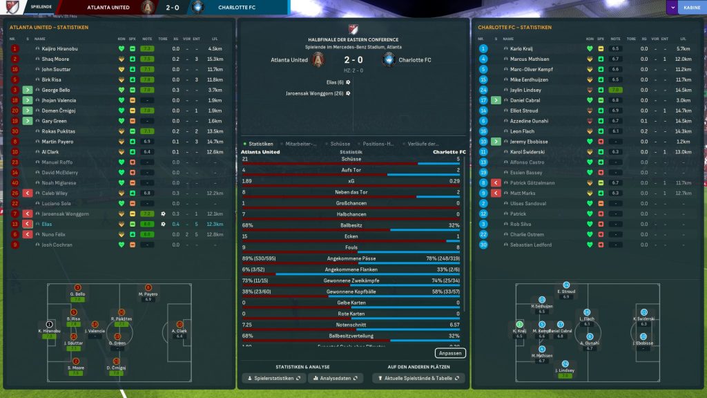 14 Tage und eine Länderspielpause (in der unser 18 Jahre junger Leihstürmer Al Clark sein Debüt für die englische Nationalmannschaft von Trainer Mark von Bommel gab, sogar ein Tor erzielte und hoffentlich Selbstvertrauen sammelte) später ging es gegen Charlotte. Für viele meine Spieler bot das Duell eine Chance zur Revanche. Denn im Vorjahr schied unsere Mannschaft gegen Charlotte in den Play-offs aus. Das sollte sich nicht wiederholen…