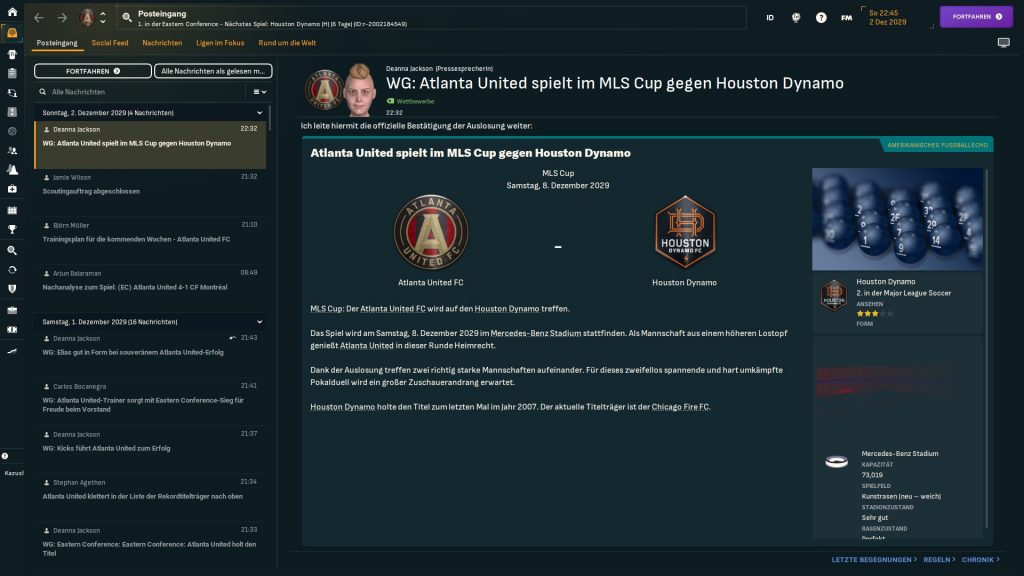 Eine weitere Trophäe steht durch den Gewinn der Eastern Conference damit in unserem Schrank, doch es soll nicht die letzte in diesem Jahr sein. In einer Woche steht ja noch das Finale um den MLS Cup. Als Gewinner der Eastern Conference treffen wir auf den Sieger der Western Conference: Houston Dynamo!