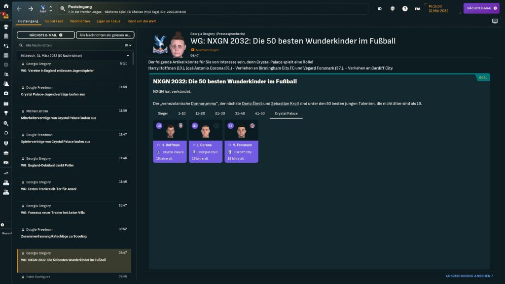 was für ein vielversprechendes Team ich hier aufbaue, zeigt nun auch der Artikel über die 50 besten Wunderkinder im Fußball. Gleich drei unserer Spieler sind Teil dieser illustren Auswahl: