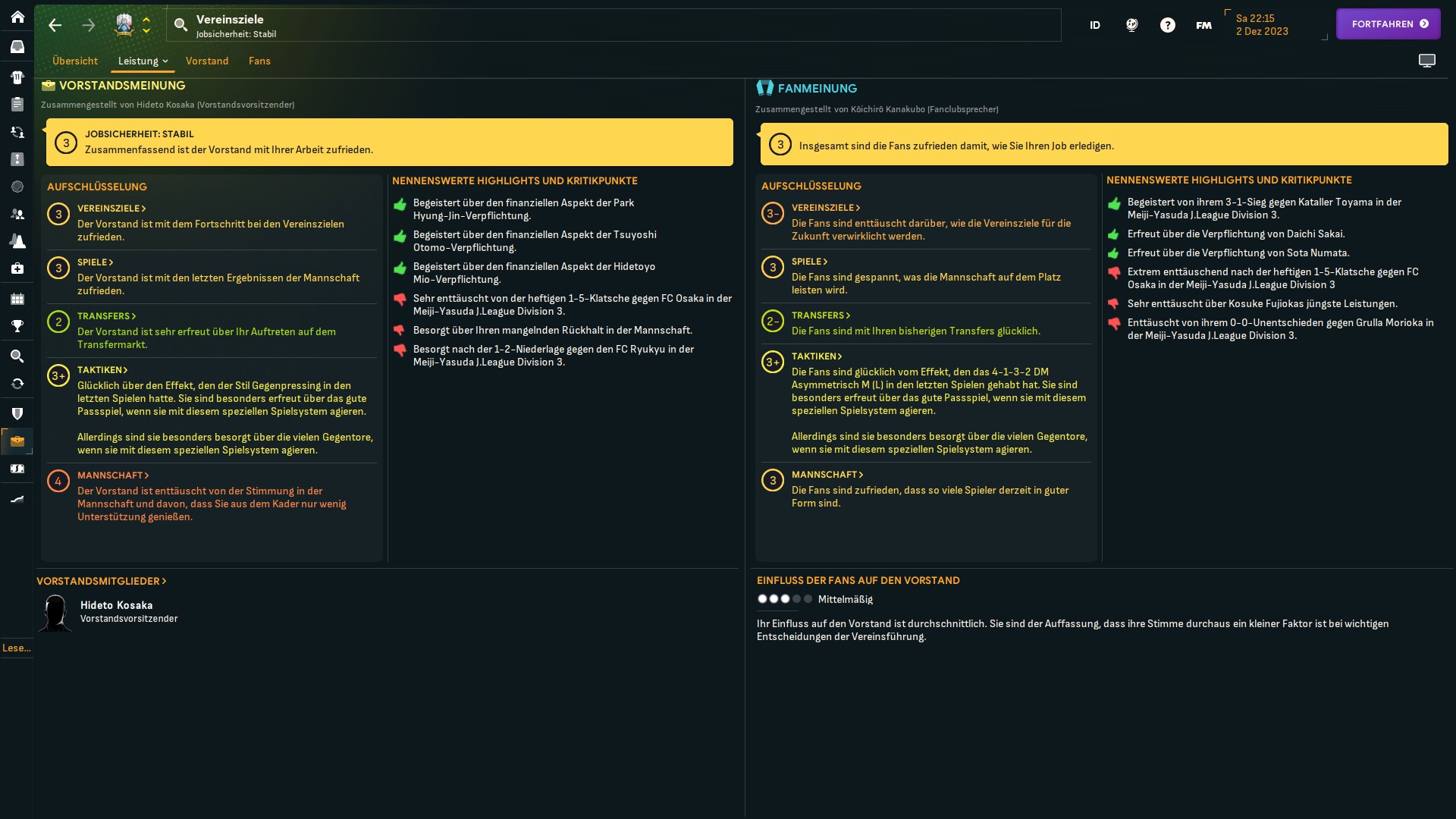 Liebes Tagebuch, mittlerweile ist mir klar, dass mit der Mannschaft in dieser Saison nicht mehr viel möglich. In die Top-5, wie vom Vorstand bei Amtsantritt gefordert, werden wir sicher nicht mehr vorstoßen. Selbst ein einstelliger Tabellenplatz scheint schwierig. Wir verharren aktuell auf dem 11. Rang, weil sich Licht und Schatten zu sehr abwechseln. Der beste …