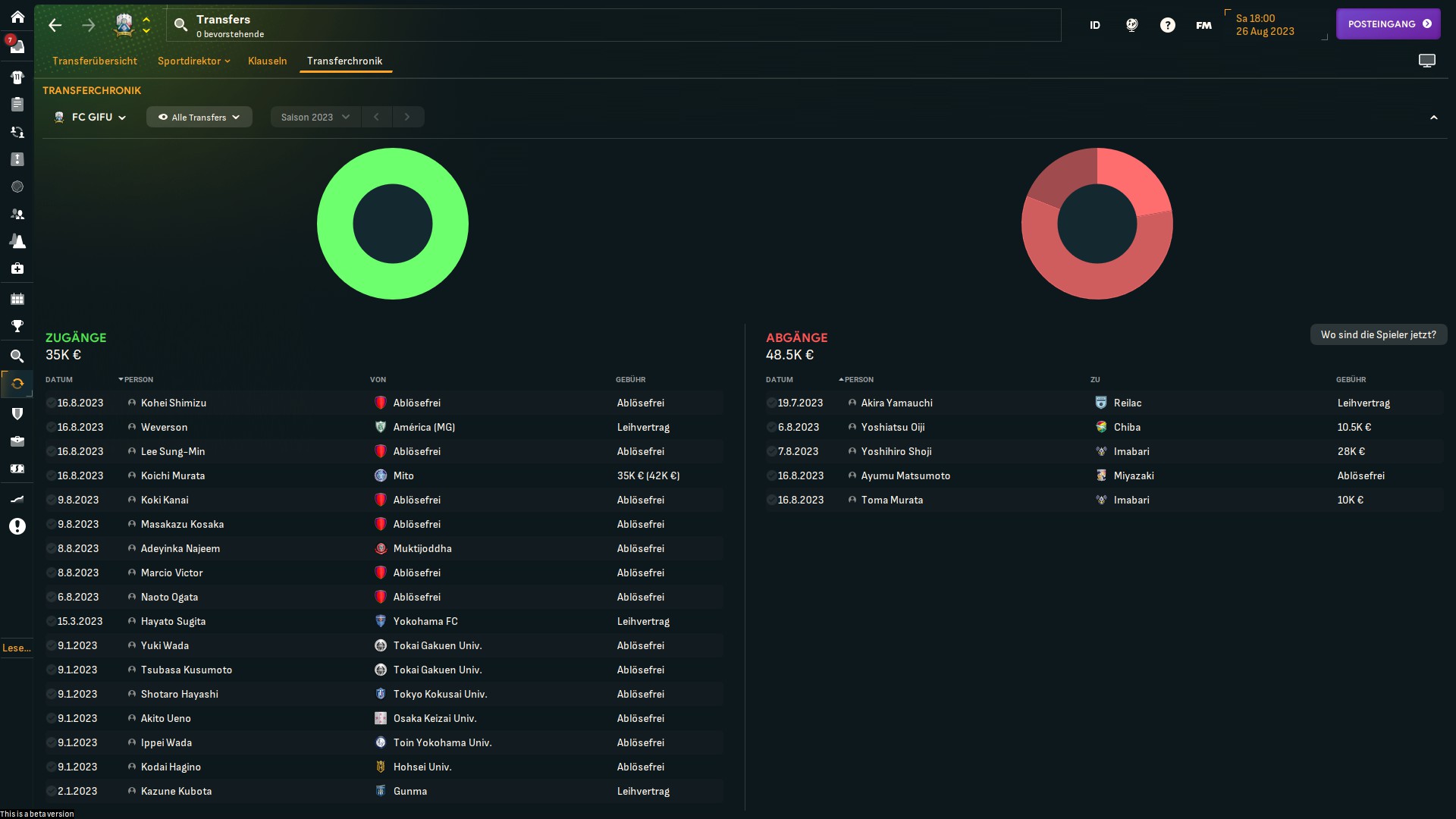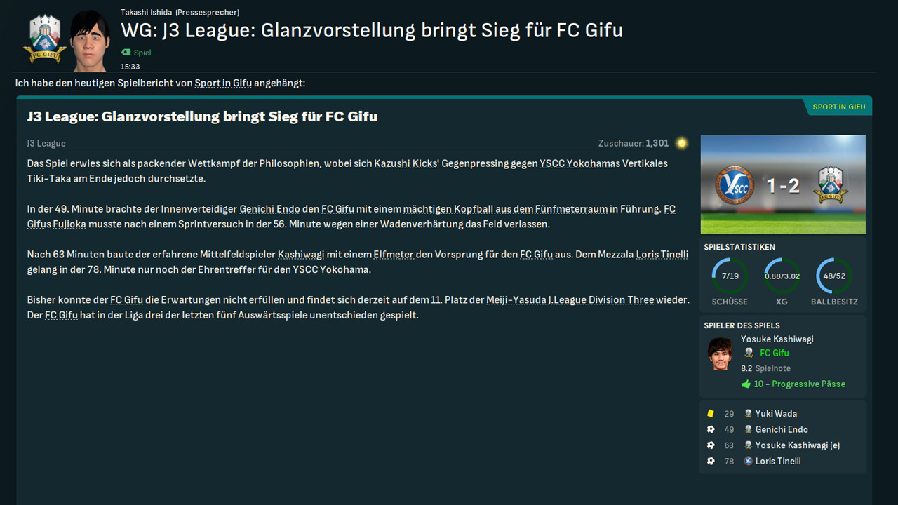 Liebes Tagebuch, es ist nun fast ein Monat vergangen, seit ich hier den Job begonnen habe – und es ist eine Menge passiert. Wir mussten schnell auf dem Transfermarkt agieren, auch ins Risiko gehen, weil gar nicht immer Zeit war, um die Spieler ausführlich zu scouten. Viel ist passiert: Doch ich glaube, wir konnten das …