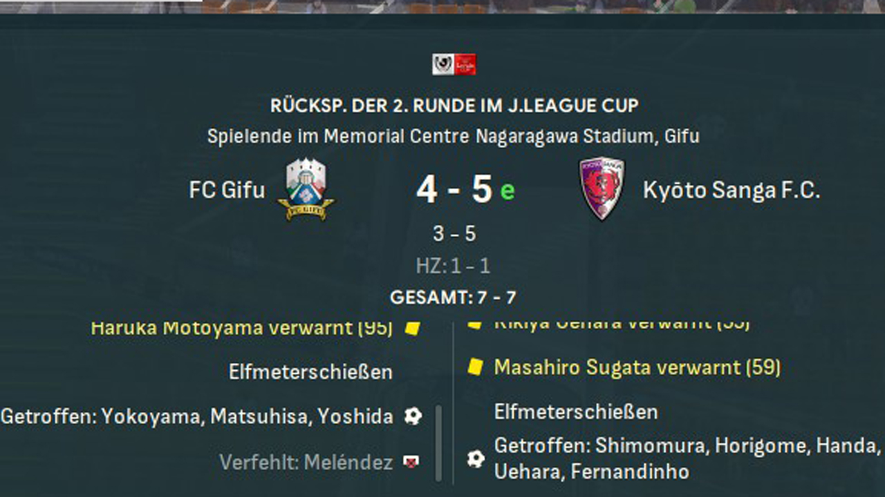 Liebes Tagebuch, in den beiden Pokal-Wettbewerben beweist mein Team, aus welchem Holz sie geschnitzt sind. Im Achtelfinale des J.League Cup haben wir das Hinspiel mit 2:0 gegen Shimizu verloren. Doch im Rückspiel zeigen wir eine beeindruckende Performance vom Elfmeterpunkt. In der regulären Spielzeit behält Josh Tucker gleich zwei Mal die Nerven und verwandelt Elfer. Nach …