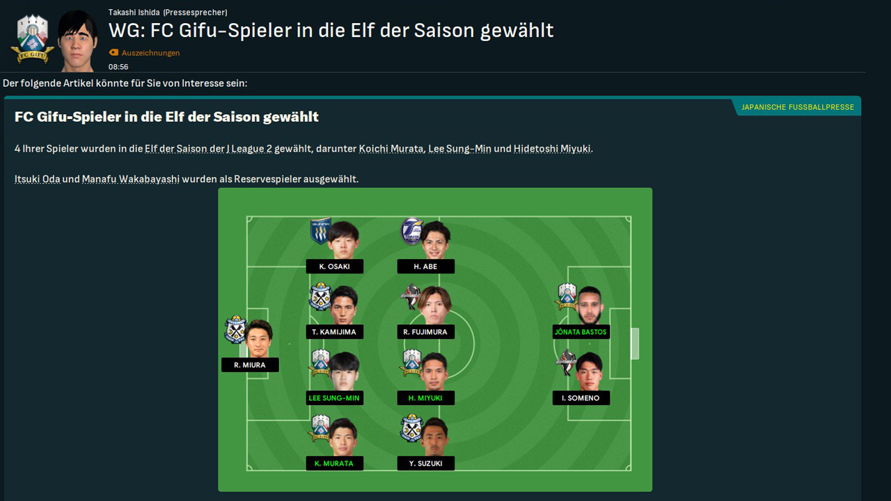 Liebes Tagebuch, es ist Zeit, auf meine bereits vierte Saison hier in Gifu zurückzublicken. Niemals hätte ich gedacht, so lange zu bleiben. Doch nach den zwei Aufstiegen musste ich einfach sehen, was trotz aller Probleme und Widrigkeiten (vor allem den Kommunikationsproblemen mit Herrn Sportishi Interactivanabe) in der ersten Liga möglich ist. Und es war verdammt …